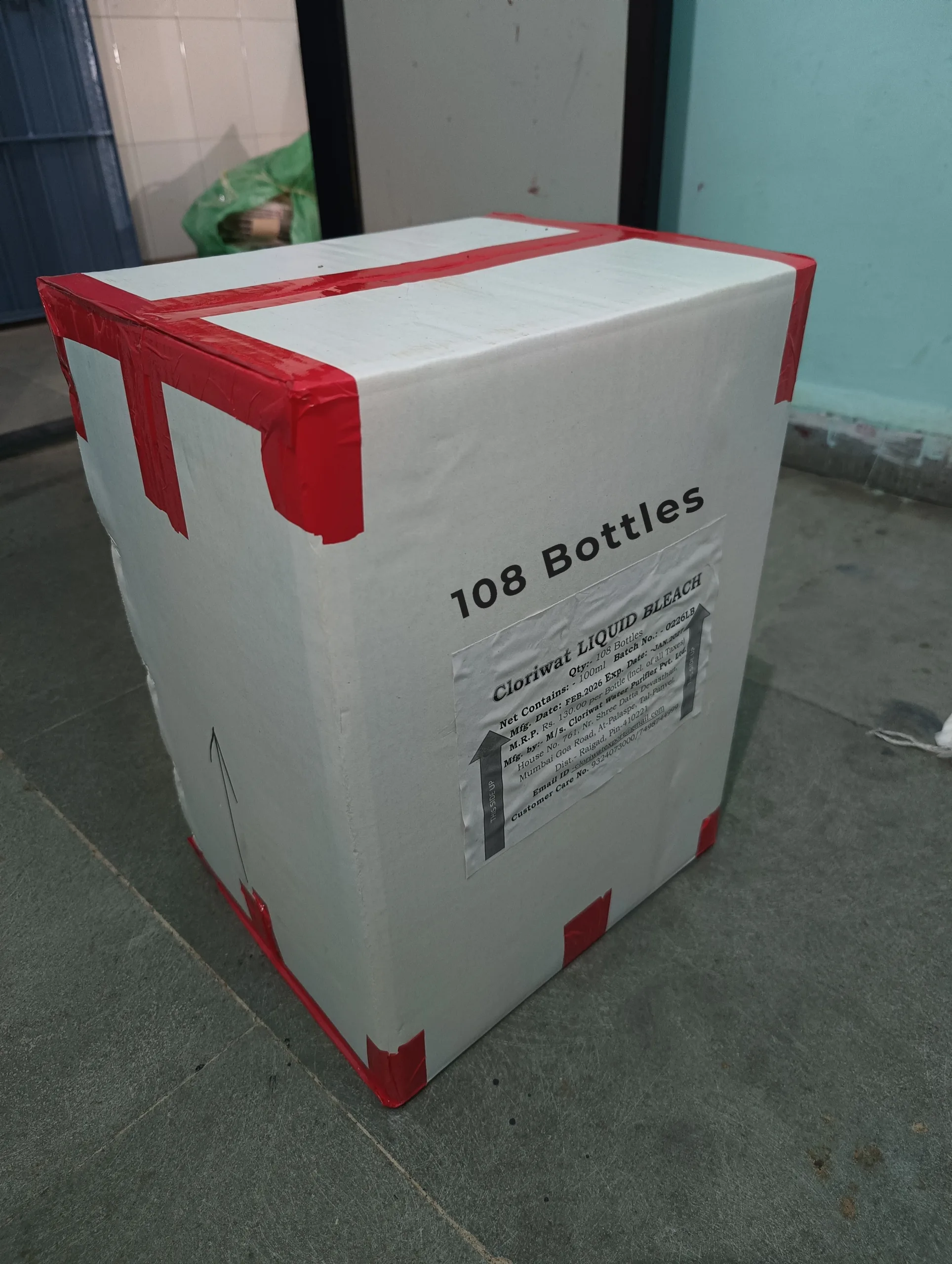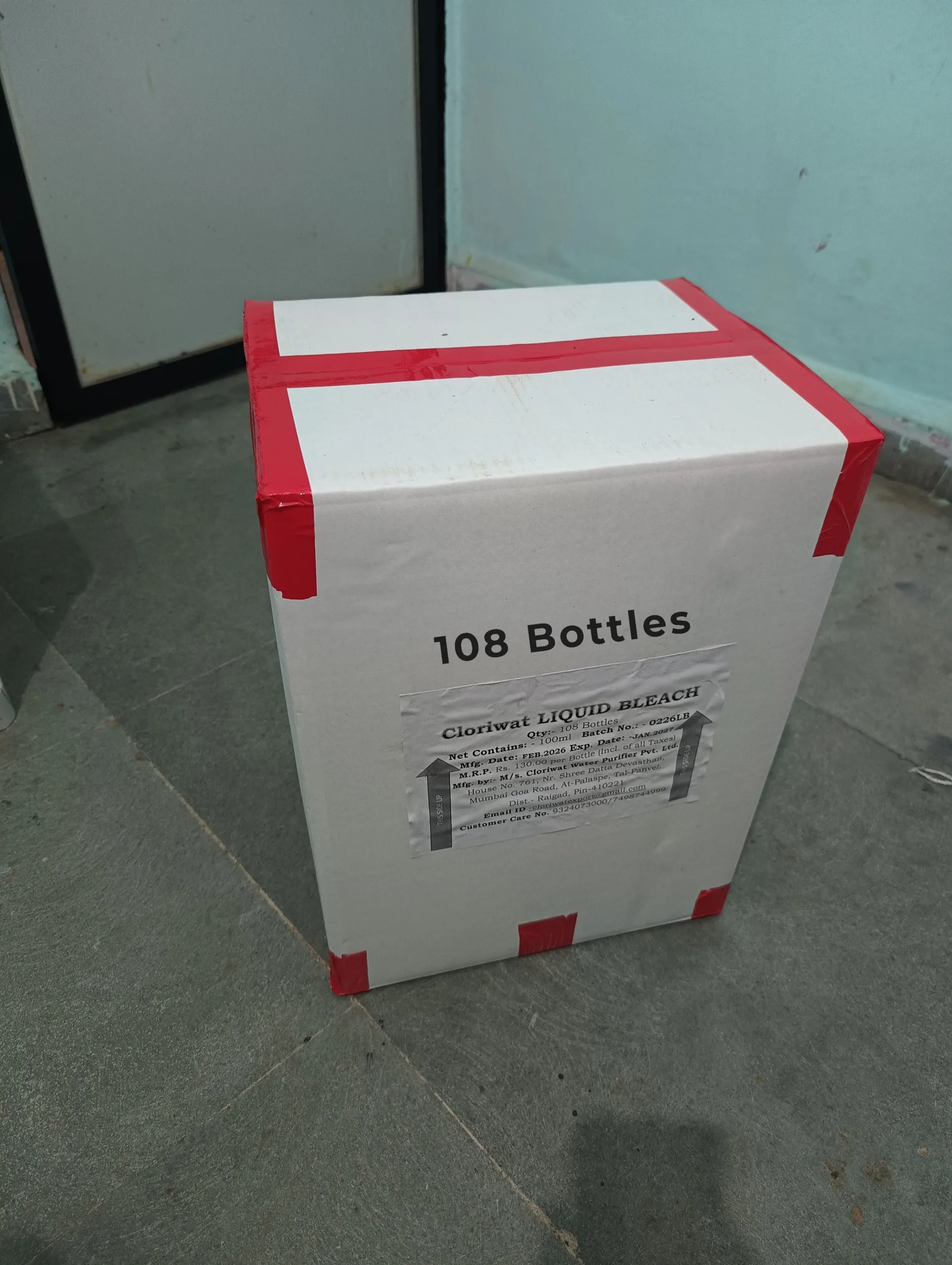 100ml (Pack of 108 Bottles) Cloriwat Water Disinfectant (Sodium Hypochlorite Solution. FDA Licensed Product. GMP Certified. ISO 9001: 2015 (ISO Certified)